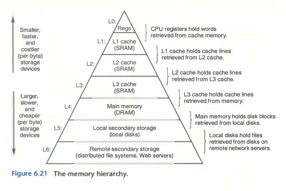 When a program needs data from cache level k+1, it looks for the data in cache level k.2
